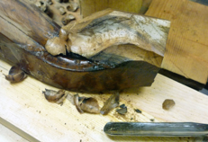 Ergänzung eines abgebrochenem Sesselfusses an einem Sessel (Nussbaum, Louis-Philippe, ca.1860)