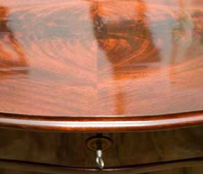Neue Schellack-Hand-Politur eines Halbschrankes (Mahagoni furniert, Louis-Philippe, um 1870/90)